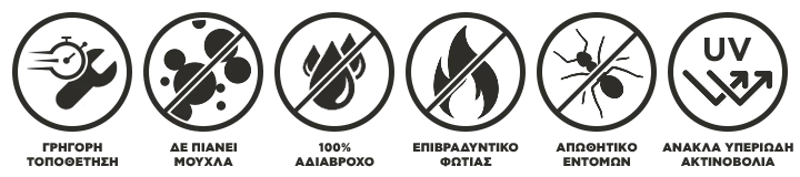 - Γρήγορη και εύκολη εγκατάσταση σε οποιαδήποτε επιφάνεια χωρίς αρμολόγηση